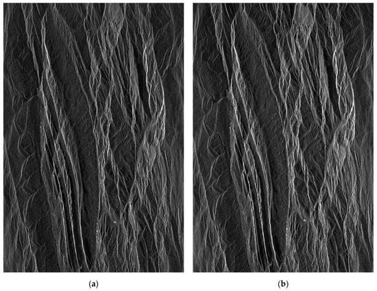 Results from spaceborne SAR data when using (a) the zero-padding method (b) and the post-processing method.