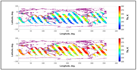 The third step of the procedure is the generation of theoretical (modeled) Tb values for both PMRs using the XCAL RTM, which is described in Section 2.1. Afterwards (step-4), the one-year match-up dataset of observed and modeled earth scene brightness is