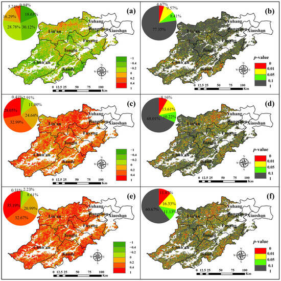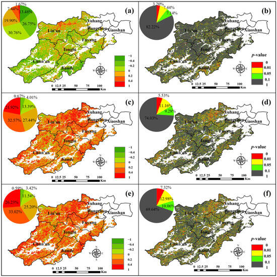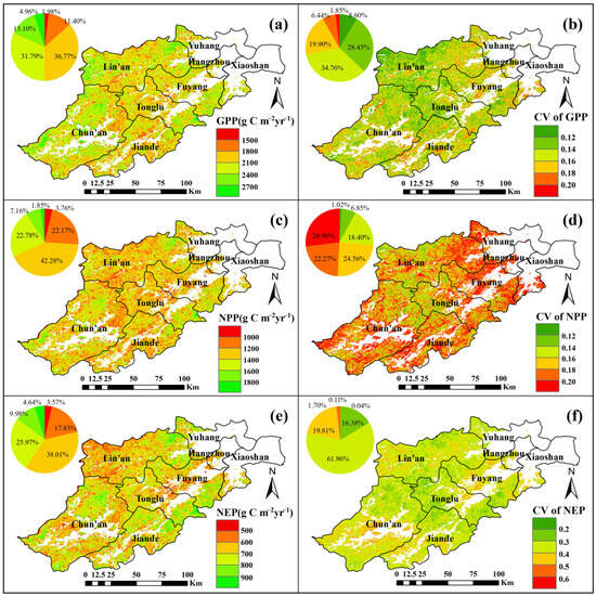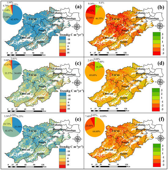 3.2. Spatial Change Trends of Carbon Cycle in Forest Ecosystems of Hangzhou