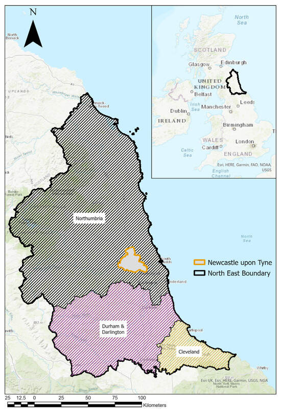 Despite being one of the lowest-performing economic regions of the UK, North East England has a burgeoning space economy: In 2021, the region achieved an income of GBP 124 m and employed around 1300 people [1]. With a diverse landscape and a population of approximately 2.65 million [37], the region also poses unique challenges for disaster management. Due to its diverse geography (urban, rural, land and sea) within a small area footprint, it serves as an appropriate testbed for assessing the application of satellite data for emergency management purposes.