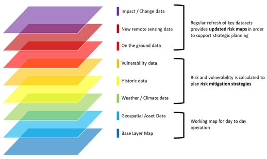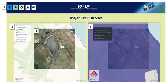 The value of satellite imagery can also be augmented and enhanced through further location-based data. For example, in the UK, the Met Office Hazard Manager provides emergency services with weather warnings, flood alerts and other hazard-related information. The European Centre for Medium-Range Weather Forecasts (ECMWF) provides the ERA5-Land dataset, which delivers hourly high-resolution information on atmospheric, land and oceanic climate variables [30]. This dataset is used for diverse applications such as climate monitoring, weather forecasting, emergency response and disaster management.