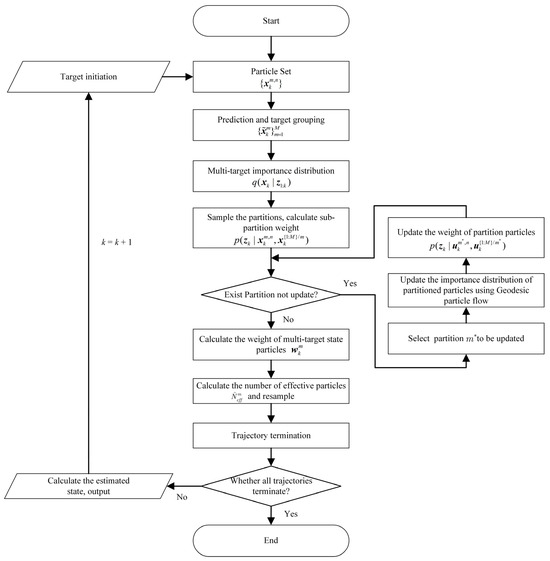 The above operation is repeated until all sub-partitions with adjacent targets are processed by particle flow filtering. At this time, the importance distribution at time k is