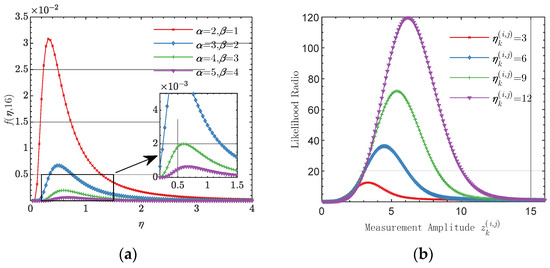 where and denote the shape and scale parameters, respectively. From [55], the amplitude distribution of resolution unit without targets is given as follows: