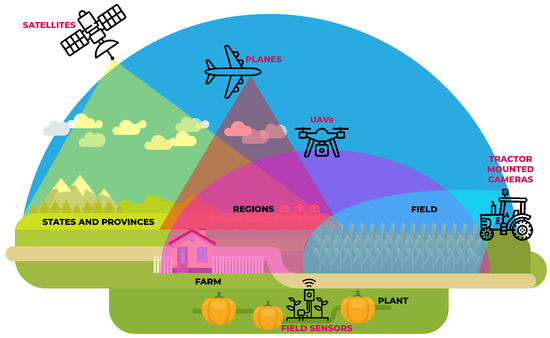 The spatial coverage of different data acquisition methods for agricultural monitoring [55].