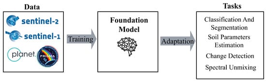 - Xiong, Z.; Wang, Y.; Zhang, F.; Stewart, A.J.; Hanna, J.; Borth, D.; Papoutsis, I.; Le Saux, B.; Camps-Valls, G.; Zhu, X.X. Neural plasticity-inspired foundation model for observing the Earth crossing modalities. arXiv 2024, arXiv:2403.15356. [Google Scholar]
