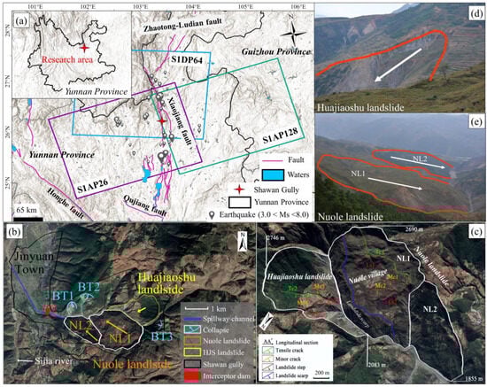 - Cai, J.; Zhang, L.; Dong, J.; Dong, X.; Li, M.; Xu, Q.; Liao, M. Detection and characterization of slow-moving landslides in the 2017 Jiuzhaigou earthquake area by combining satellite SAR observations and airborne Lidar DSM. Eng. Geol. 2022, 305, 106730. [Google Scholar] [CrossRef]