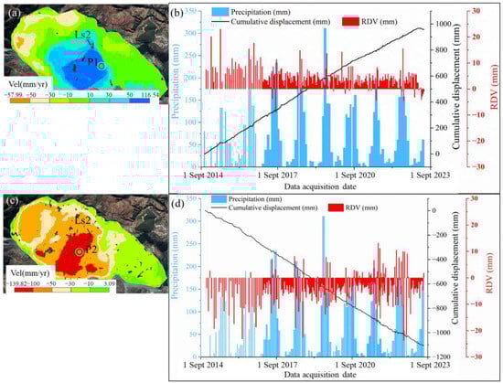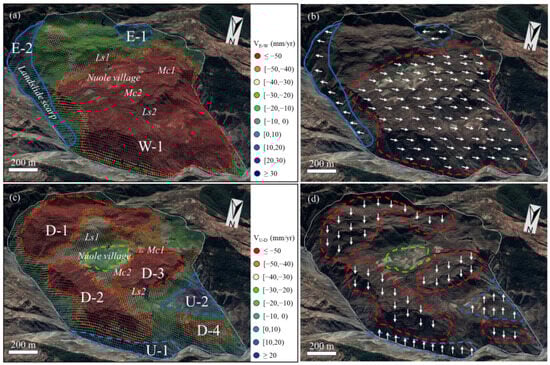 - This study used 688 Sentinel-1 SAR scenes collected from three orbits: S1AP26, S1AP128, and S1DP62. Before SBAS-InSAR processing, we proposed a method to evaluate the suitability of the InSAR monitoring scheme based on geometric distortions and monitoring sensitivity. The results show that the SAR imagery from Sentinel-1 ascending path 128 is severely affected by layover and shadow, making it unsuitable for refined monitoring of the Nuole and Huajiaoshu landslides. Among the remaining two orbits, the descending path 62 provides higher reliability for surface deformation monitoring.