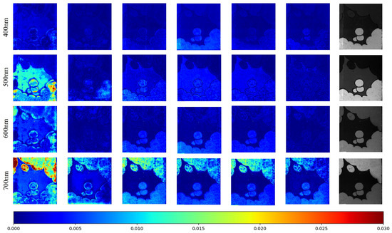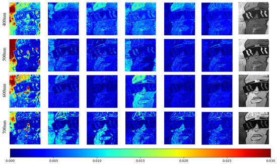 The complete SSHFormer framework, combining both SSMA and 3DFFN, achieves optimal performance by leveraging their complementary strengths. SSMA’s ability to model long-range dependencies and 3DFFN’s effective feature fusion mechanism work synergistically to achieve the following: 1. extract rich spectral information from RGB inputs; 2. maintain spatial consistency across different spectral bands; 3. enhance fine detail preservation in the reconstructed images; and 4. improve overall reconstruction accuracy.