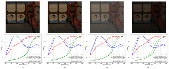 - Arad, B.; Timofte, R.; Yahel, R.; Morag, N.; Bernat, A.; Cai, Y.; Lin, J.; Lin, Z.; Wang, H.; Zhang, Y.; et al. Ntire 2022 spectral recovery challenge and data set. In Proceedings of the IEEE/CVF Conference on Computer Vision and Pattern Recognition, New Orleans, LA, USA, 18–24 June 2022; pp. 863–881. [Google Scholar]
