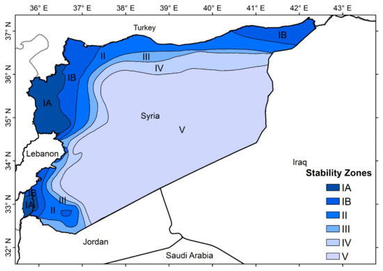 Based on total mean annual precipitation, Syria is divided into 5 agricultural stability zones [34]: