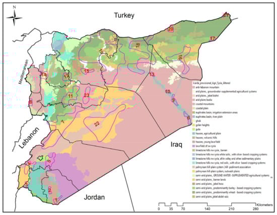 - FAO. Counting the Cost: Agriculture in Syria after Six Years of Crisis; FAO: Rome, Italy, 2017. [Google Scholar]