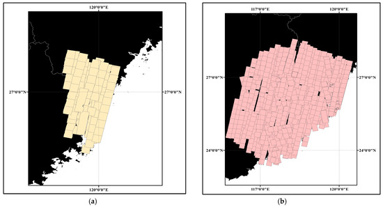 HaiSi-1 SAR intensity images covering Fujian Province, China: (a) 122 images, (b) 737 images.
