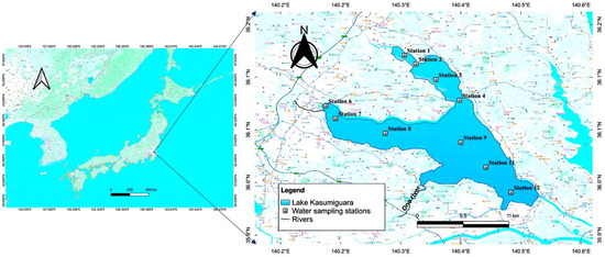 Location of Lake Kasumigaura and water sampling stations.