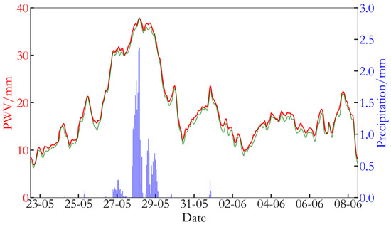 PWV data were collected from the GNSS buoy, while precipitation, temperature, atmospheric pressure, and relative humidity at the buoy location were obtained via bilinear interpolation from the surrounding ERA5 data. The temporal resolution is set to hourly, with UTC time used for uniform alignment;