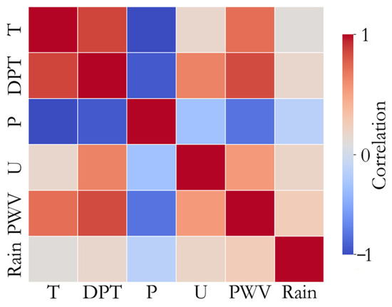 The collected data undergo cleaning, including the removal of missing and outlier values. Subsequently, input variables such as temperature, atmospheric pressure, relative humidity, and atmospheric PWV are normalized, with their values scaled between 0 and 1 to reduce the impact of dimensional differences on model training;