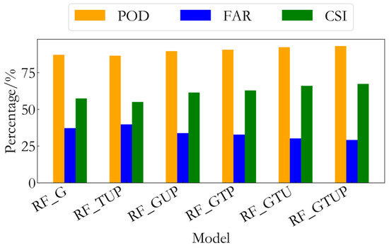 POD), also referred to as recall, which represents the proportion of accurately forecasted rainfall events among the total true rainfall events. It reflects the model’s ability to correctly identify rainfall events, with higher values indicating better model performance; (2) false alarm rate (