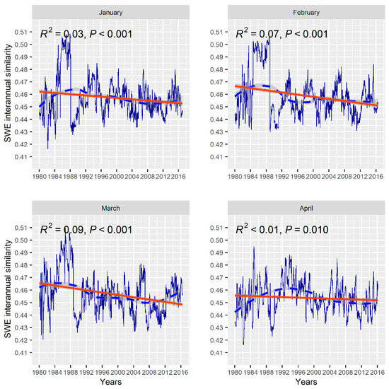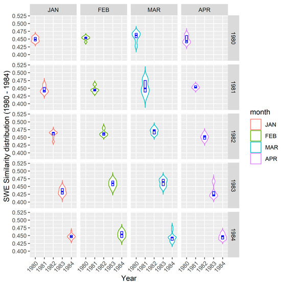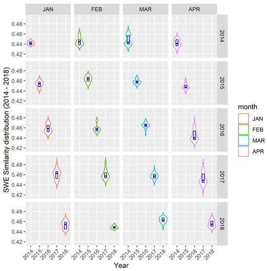 4.2. A Comparison of Monthly Changes in SWE Distribution over 5 Years