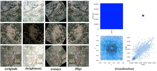 Through the aforementioned enhancement strategies, the sample scarcity problem in remote sensing small object detection was effectively mitigated. Bounding box coordinate synchronous transformations were performed for each enhancement method to ensure annotation information remained consistent with image transformations. The RS-APD dataset addresses the deficiencies of existing public remote sensing datasets in airport scene small object detection, providing a more professional and challenging benchmark for the development and evaluation of aerial target detection algorithms, as well as a solid foundation for validating the performance of the improved YOLO11 model algorithm in this research.