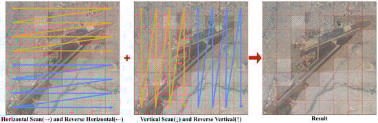 SS2D efficiently captures long-distance spatial dependencies by performing selective scanning in multiple spatial directions. First, the input feature X is mapped to a higher-dimensional feature space through a linear projection layer and decomposed into content features X′ and gating features Z. Figure 5 illustrates the SS2D strategy.