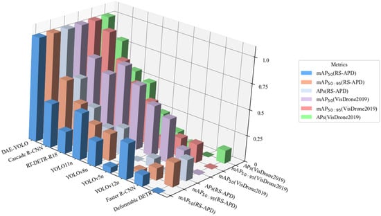 The comprehensive performance evaluation demonstrates that DAE-YOLO achieves significant improvements across all critical detection metrics while maintaining computational efficiency. In terms of detection accuracy, our model substantially outperforms baseline YOLO11n in both standard mAP50 and the more stringent mAP50:95 evaluations, indicating superior localization precision across varying IoU thresholds. Most importantly, the small object detection performance (APs) shows remarkable enhancement, directly addressing the fundamental challenge in remote sensing imagery where objects occupy minimal pixel areas. From a computational efficiency perspective, DAE-YOLO maintains competitive parameter count and actually reduces floating-point operations compared to the baseline, demonstrating the effectiveness of our architectural optimizations. The runtime performance analysis reveals that while inference speed experiences only marginal reduction, the model maintains real-time processing capability essential for practical applications. Average processing time per image remains within acceptable bounds for operational deployment, while GPU memory consumption increases minimally, ensuring compatibility with standard hardware configurations. Compared to heavyweight alternatives like two-stage detectors that achieve higher accuracy at the cost of dramatically reduced inference speed and substantially increased memory requirements, and transformer-based methods that demand excessive computational resources, DAE-YOLO strikes an optimal balance across all performance dimensions. The consistent improvements across diverse datasets validate the robustness and generalizability of our approach, conclusively establishing DAE-YOLO as a superior solution that enhances detection accuracy while preserving the computational efficiency essential for real-world remote sensing applications.