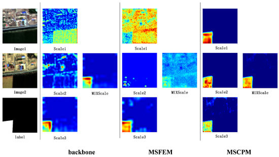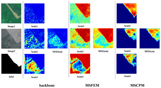 The large scale difference of ground objects in remote sensing images is mainly reflected in two aspects. First, within single-phase images, there are significant differences in the scale of cropland of varying sizes. Second, significant scale differences exist between existing cropland and illegally occupied cropland when comparing bitemporal images. This scale disparity can cause feature overlap in traditional single-scale models. Consequently, these models often fail to detect small-scale changes, such as newly constructed small residential buildings and road expansions, resulting in scattered occupation of cropland. This poses a significant challenge to the model’s ability to accurately identify changes in cropland. Therefore, we designed the MSFEM to solve this problem.