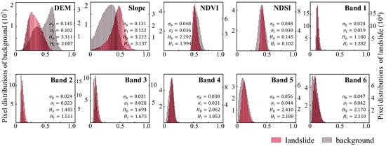 Landslide and background pixel distributions.
