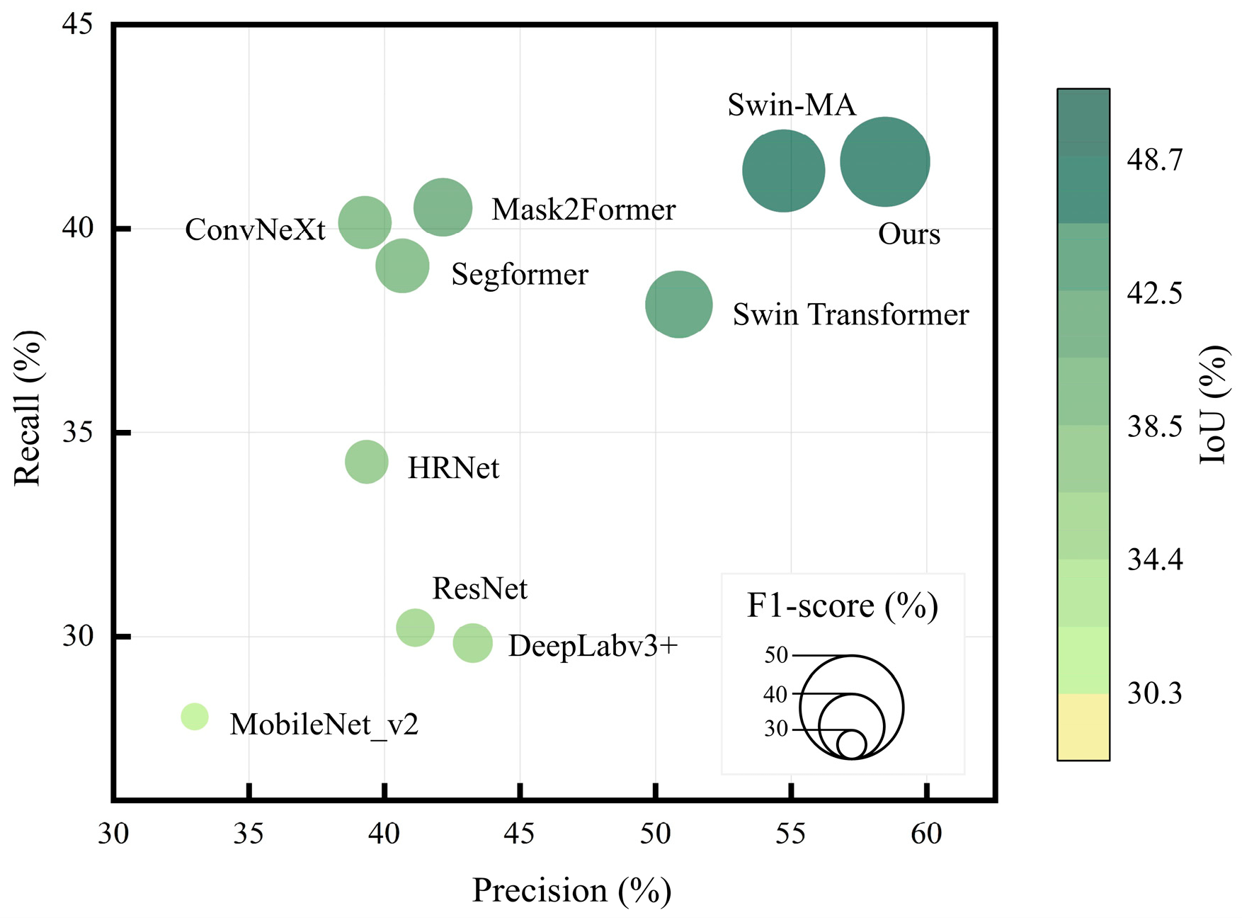 - The framework provides a robust solution for large-scale landslide extraction, effectively overcoming the challenges of data imbalance and complex background interference.
