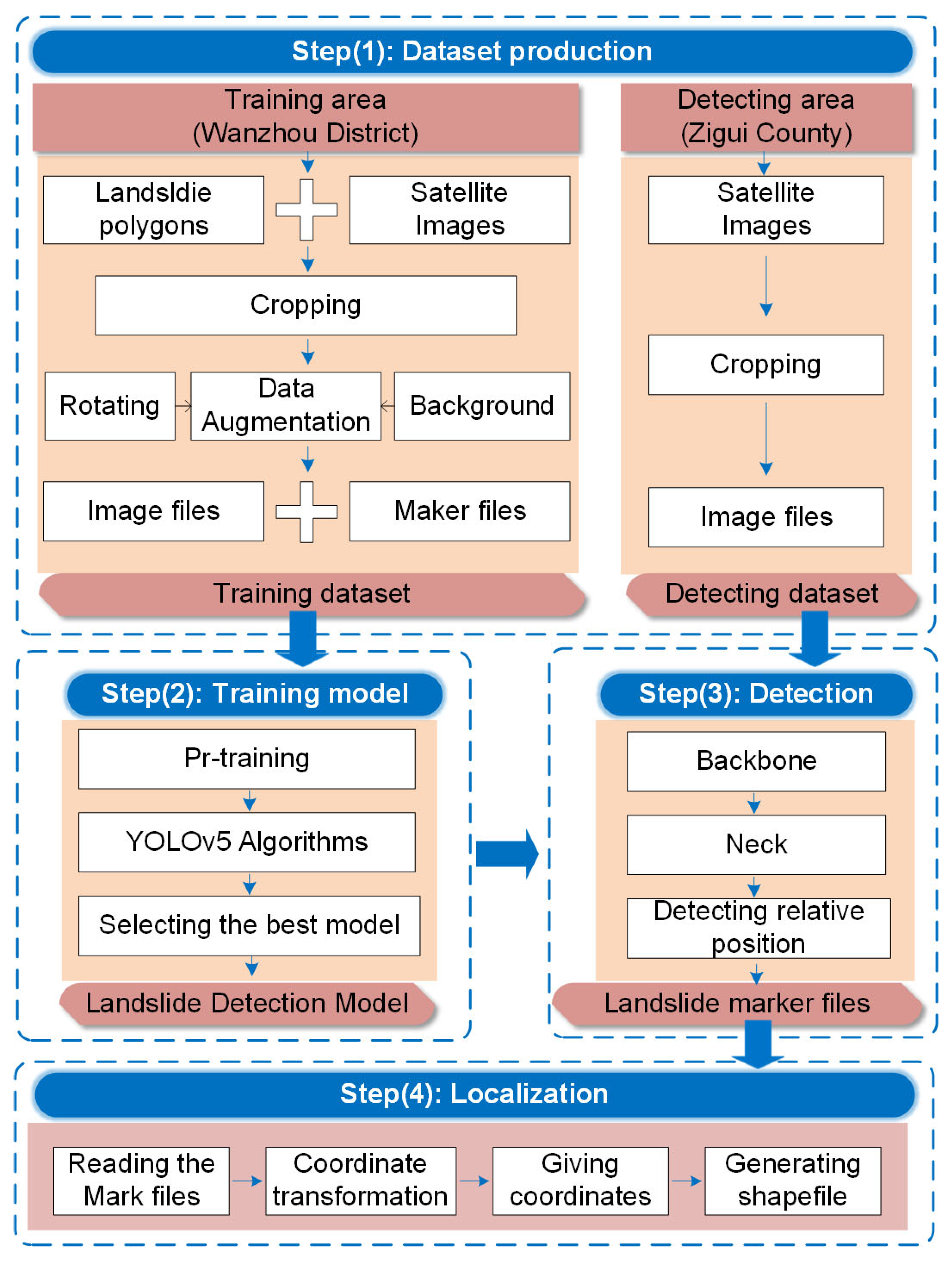 - Wu, L.; Liu, R.; Li, G.; Gou, J.; Lei, Y. Landslide detection methods based on deep learning in remote sensing images. In Proceedings of the 2022 29th International Conference on Geoinformatics, Beijing, China, 15–18 August 2022; pp. 1–4. [Google Scholar] [CrossRef]