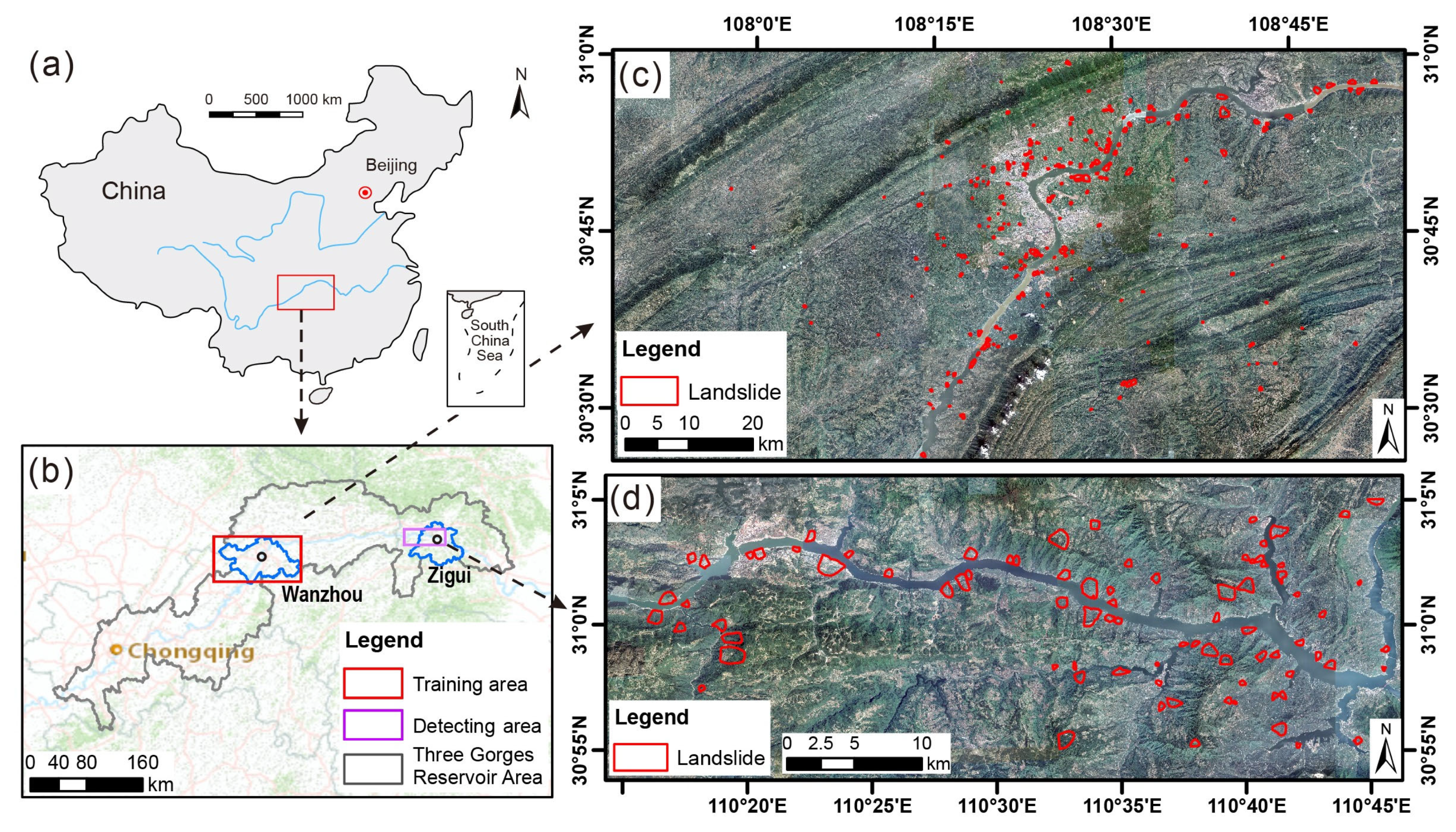 - Liu, T.; Chen, T.; Niu, R.; Plaza, A. Landslide detection mapping employing CNN, ResNet, and DenseNet in the Three Gorges Reservoir, China. IEEE J. Sel. Top. Appl. Earth Obs. Remote Sens. 2021, 14, 11417–11428. [Google Scholar] [CrossRef]