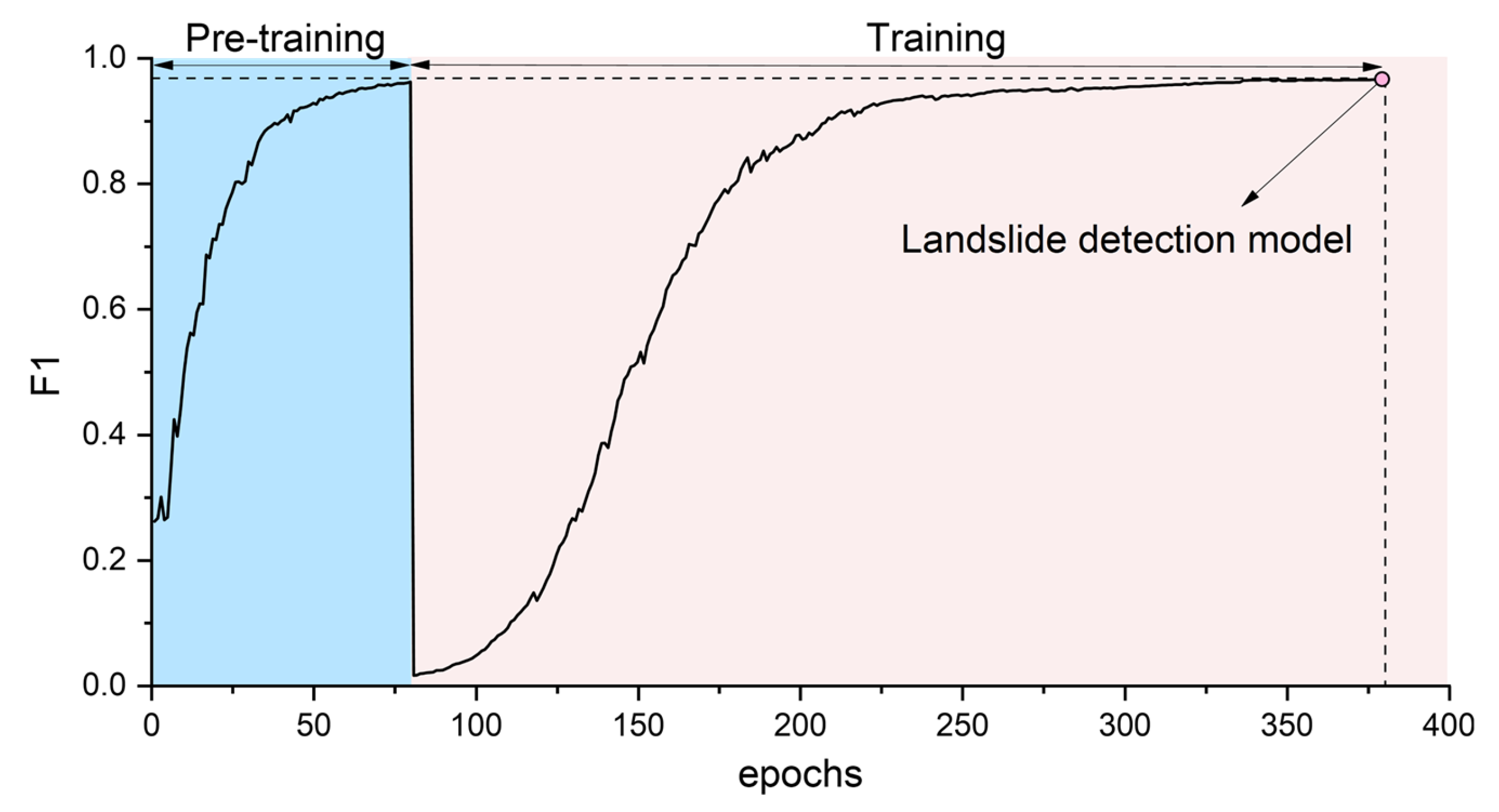 - The proposed model achieved an F1 score of 0.96 in the training area and successfully identified 90 old landslides in the detecting area, including 60 previously mapped and several newly recognized ones, demonstrating transferability to unsurveyed “blind zones”.