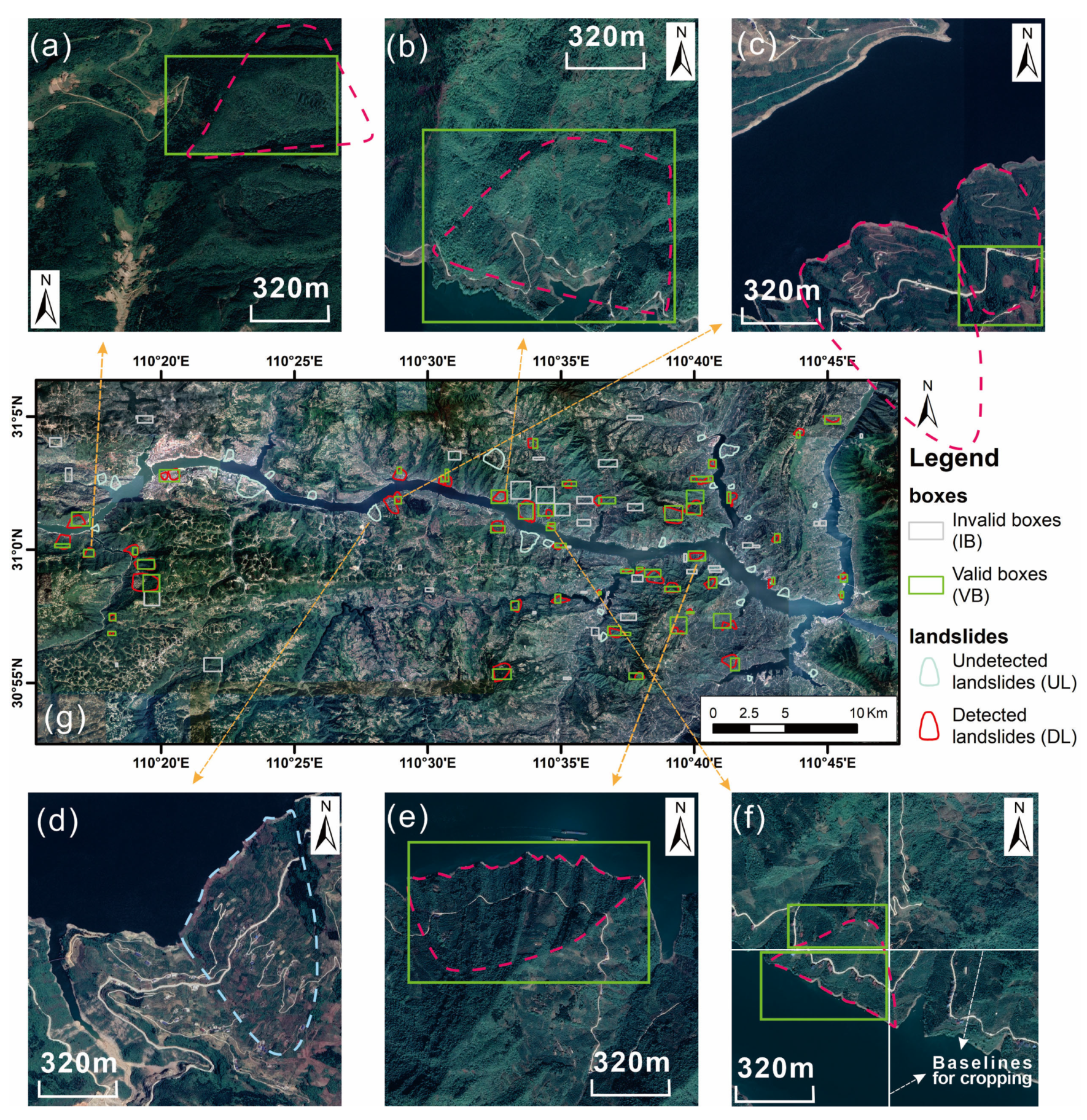 | Multi-landslide Bounding Boxes | a box detects adjacent landslides | Figure 7c | ![]() | +1 | +2 |