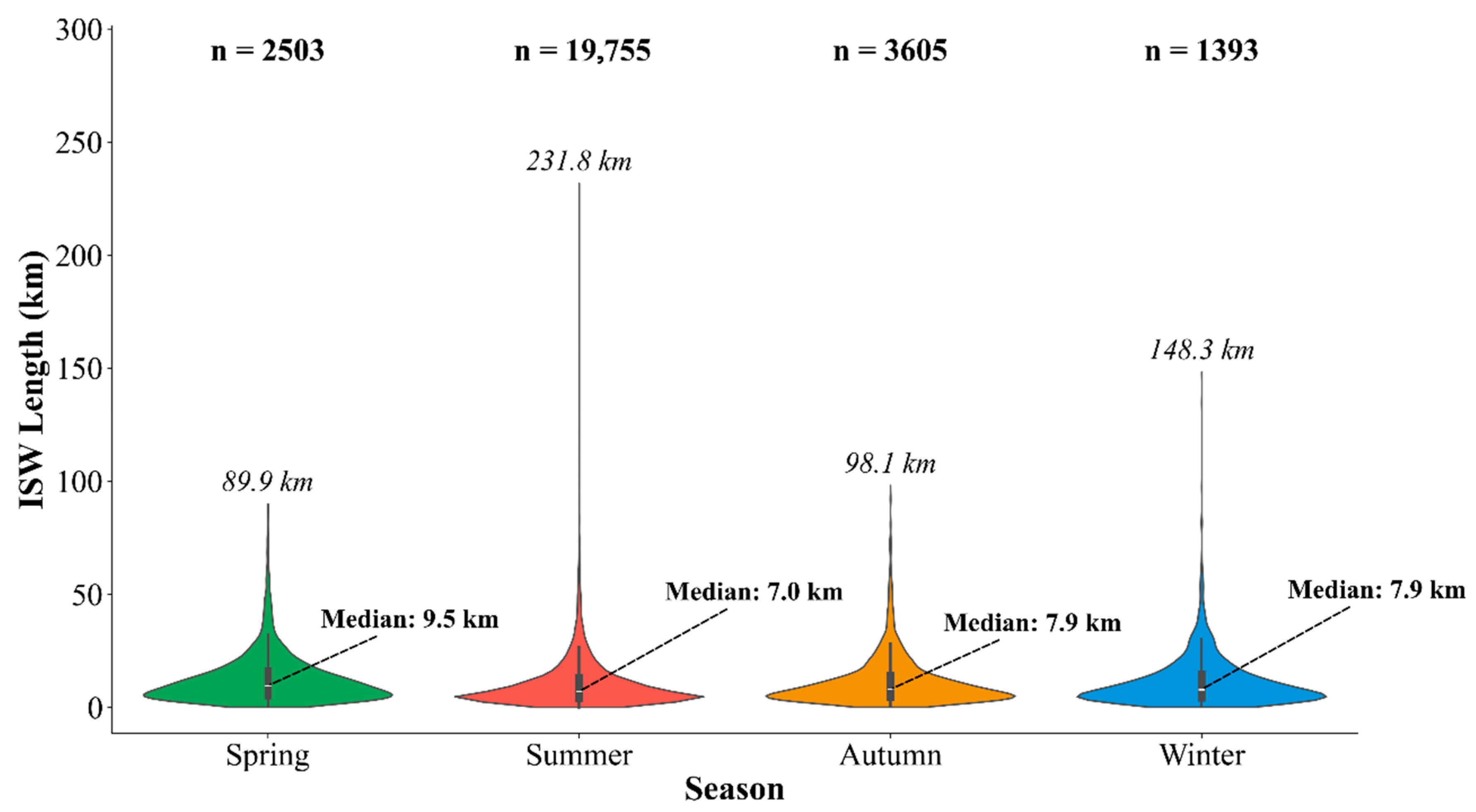 4. Results and Discussion: Spatiotemporal Distribution of ISWs