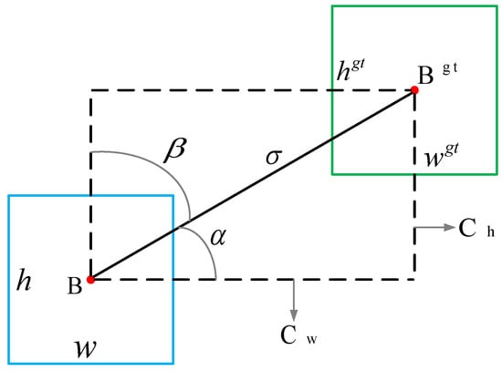 denotes the angular cost, where the angle in this cost function refers to the angle formed by the line connecting the centre point of the ground truth and the centre point of the predicted bounding box. The formula is as follows.