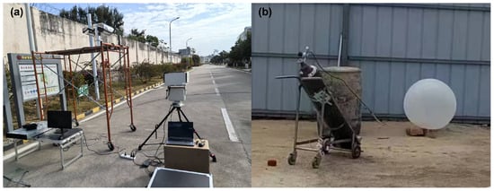 The field trial setup is illustrated in Figure 11. To simulate a sudden leakage event while strictly adhering to safety and environmental regulations, a balloon-bursting method was employed. Pure methane was injected into a white balloon with a diameter of approximately 70 cm, which was then ruptured to generate an instantaneous gas cloud against a building background under windless conditions. Although actual industrial scenarios typically involve larger-scale continuous emissions, this controlled instantaneous release provides a safe and valid testbed for evaluating the algorithm’s response to high-concentration methane bursts.