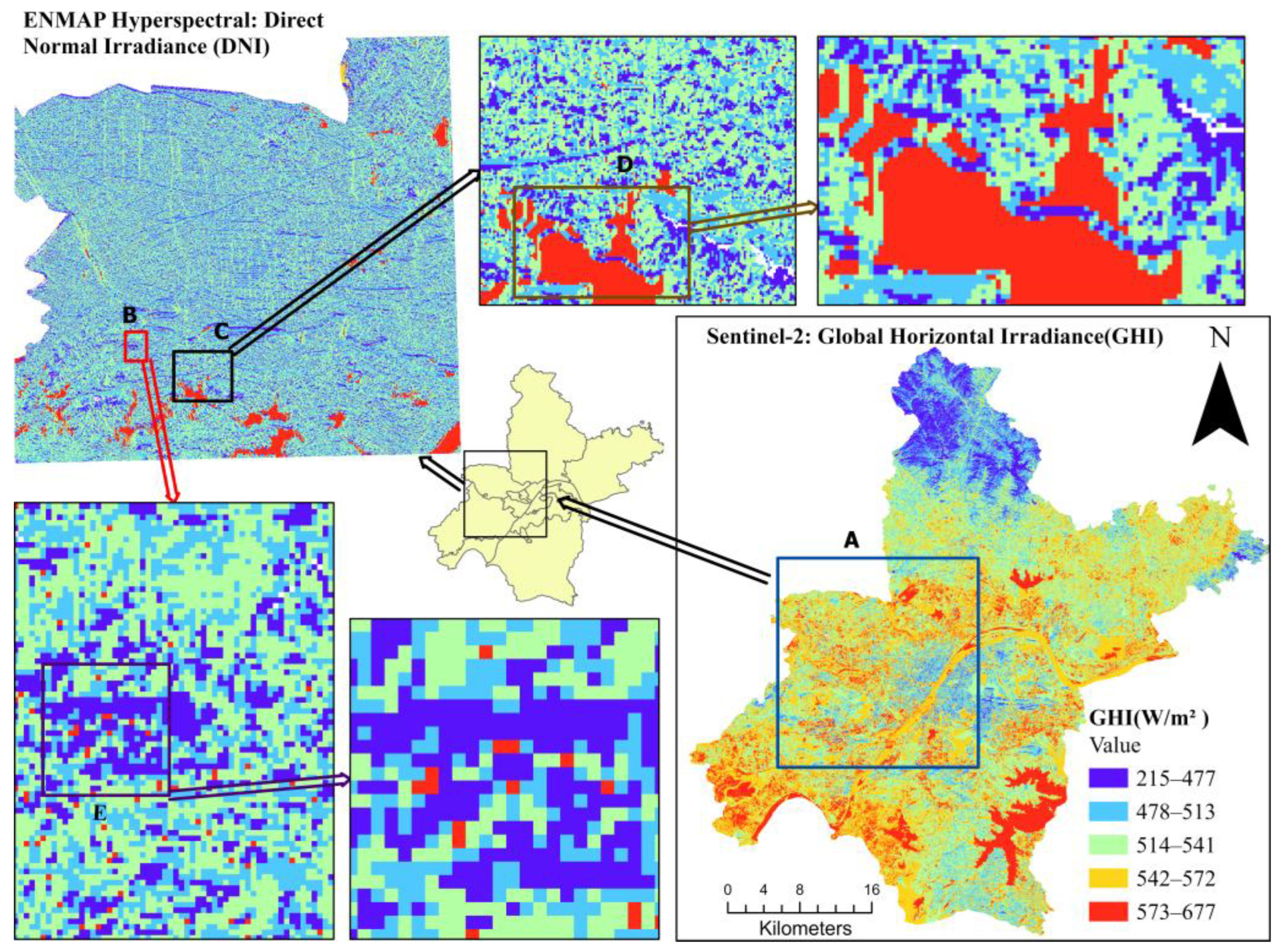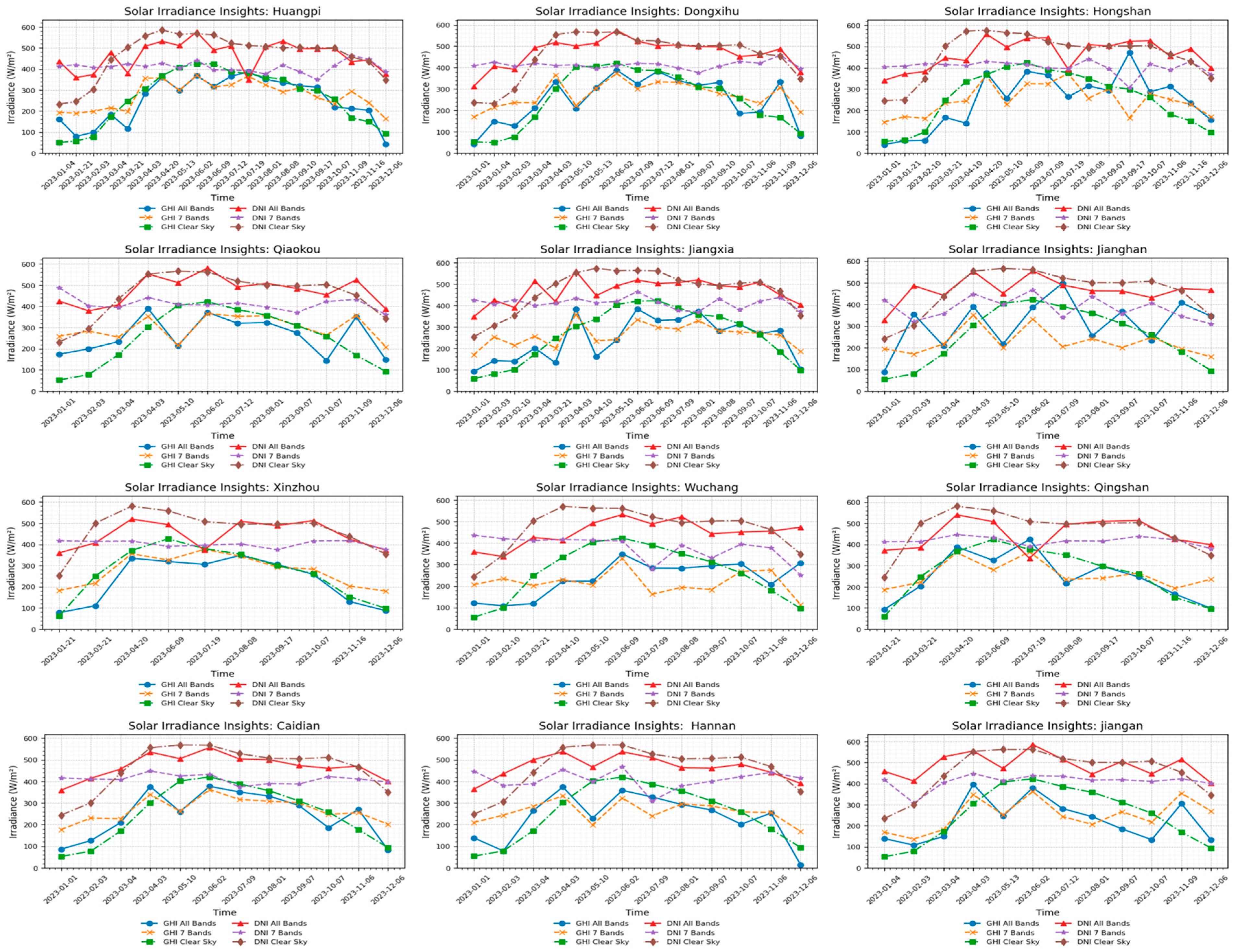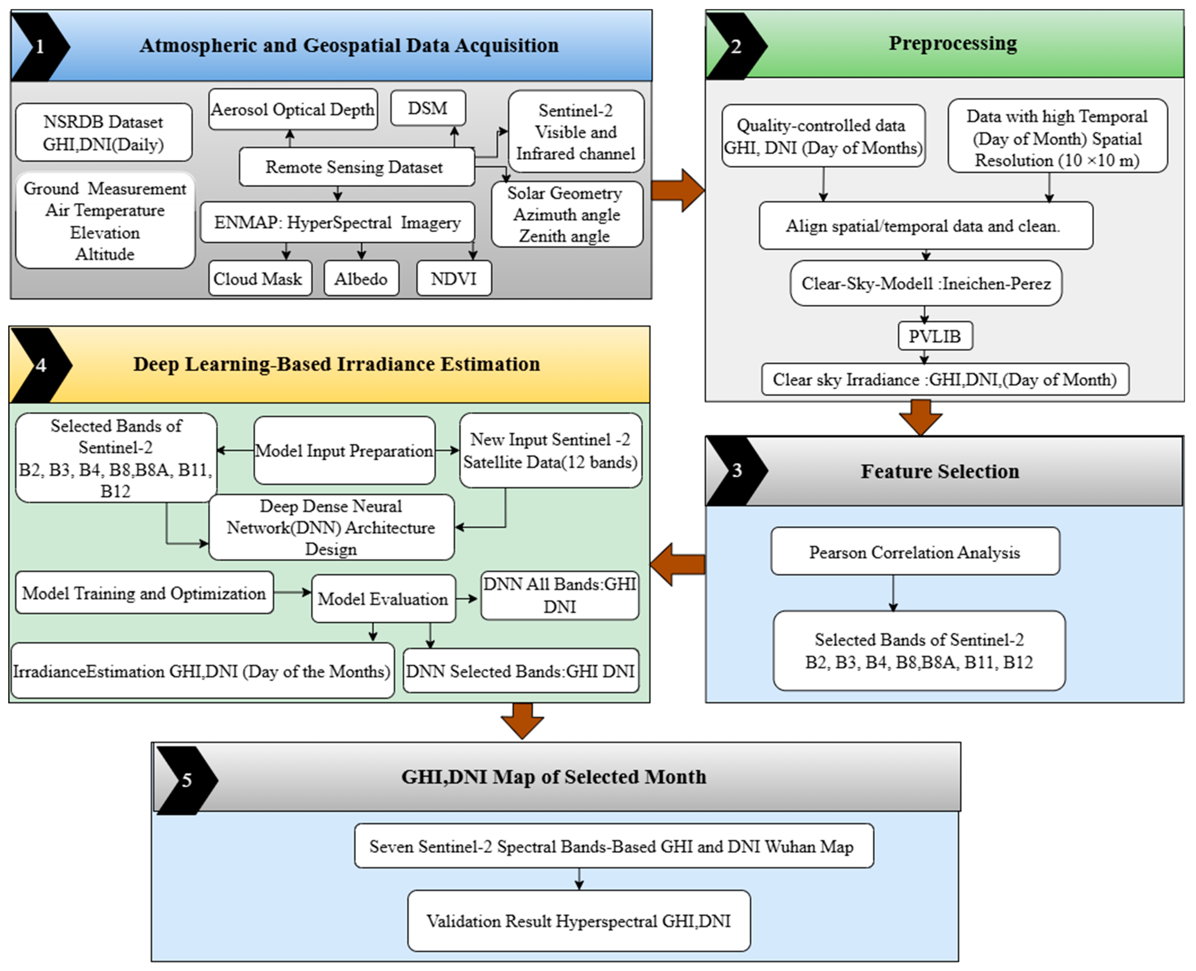 - The combination of the Perez–Ineichen (PI) model with a Deep Neural Network (DNN) for accurate urban solar irradiance (USI) prediction in Wuhan using high-resolution Sentinel-2 data.