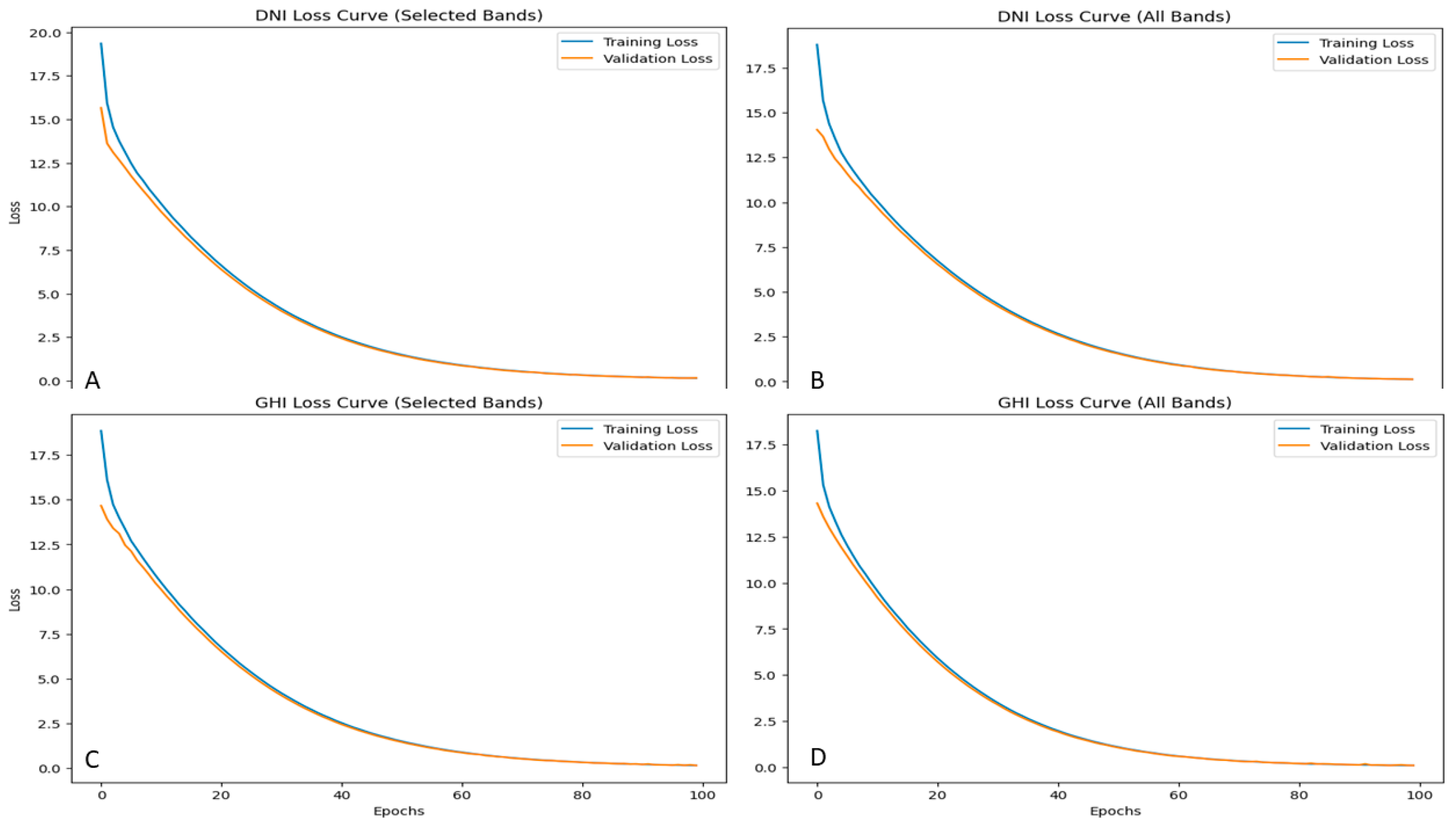 - Validation via hyperspectral imagery: Global Horizontal Irradiance (GHI) and Direct Normal Irradiance (DNI) maps produced by model outputs compare with genuine hyperspectral GHI maps from Sentinel-2 imagery for accuracy and reliability of model predictions.