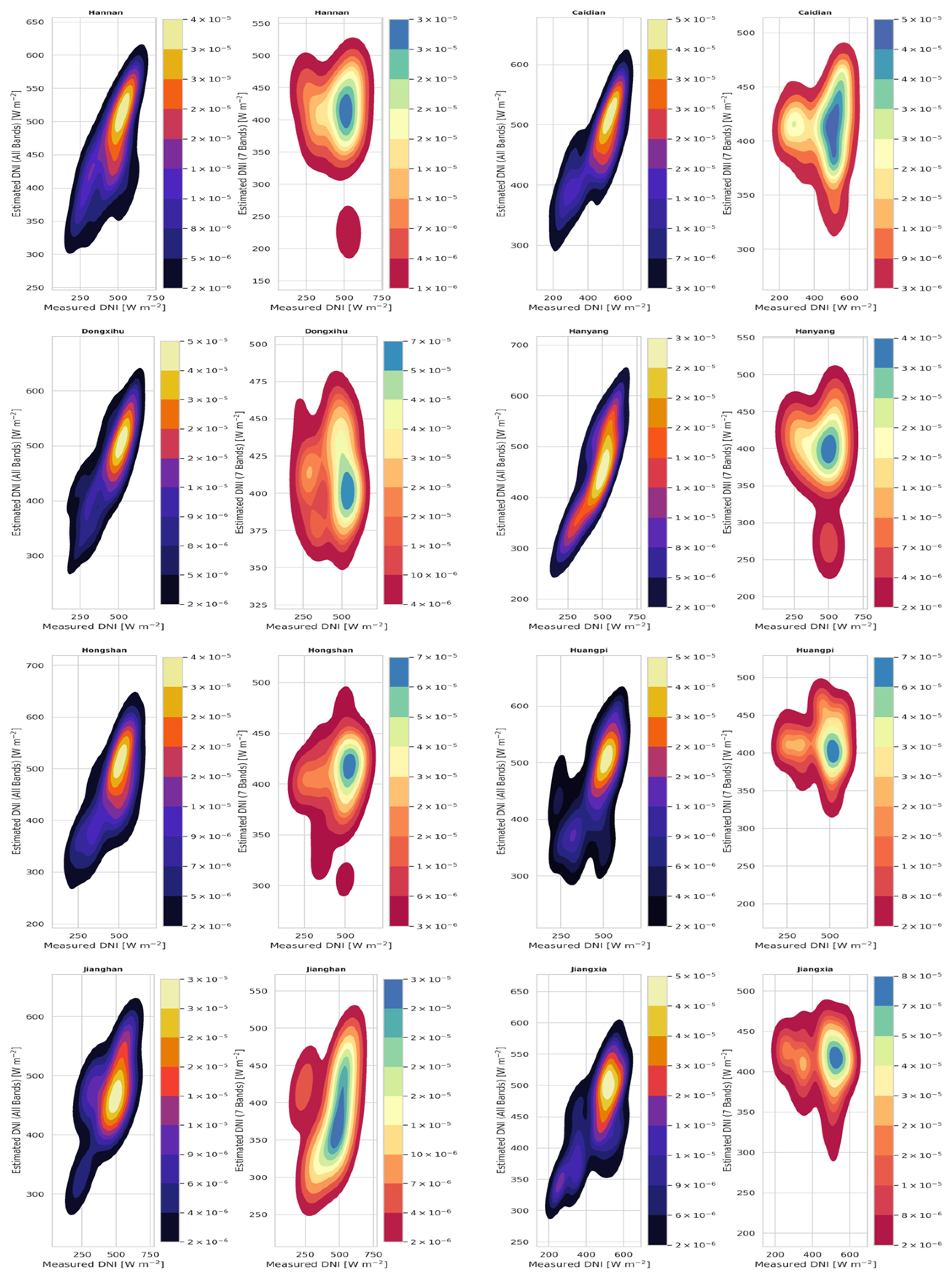 3.5. Validation of GHI and DNI Estimates Using Hyperspectral Imagery