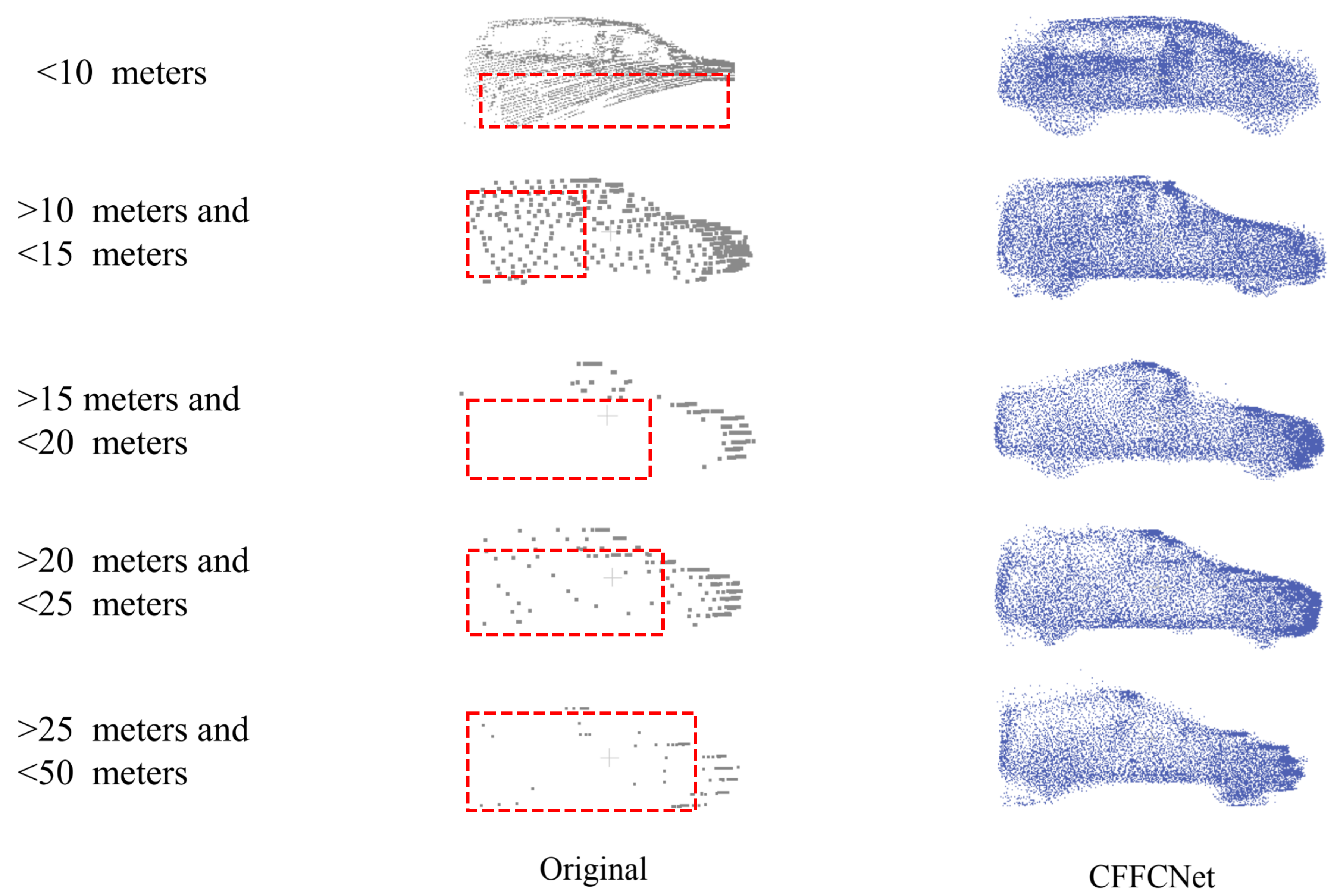 | Range (m) | Num | Orig. Center | Comp. Center | Orig. L | Orig. W | Orig. H | Comp. L | Comp. W | Comp. H |