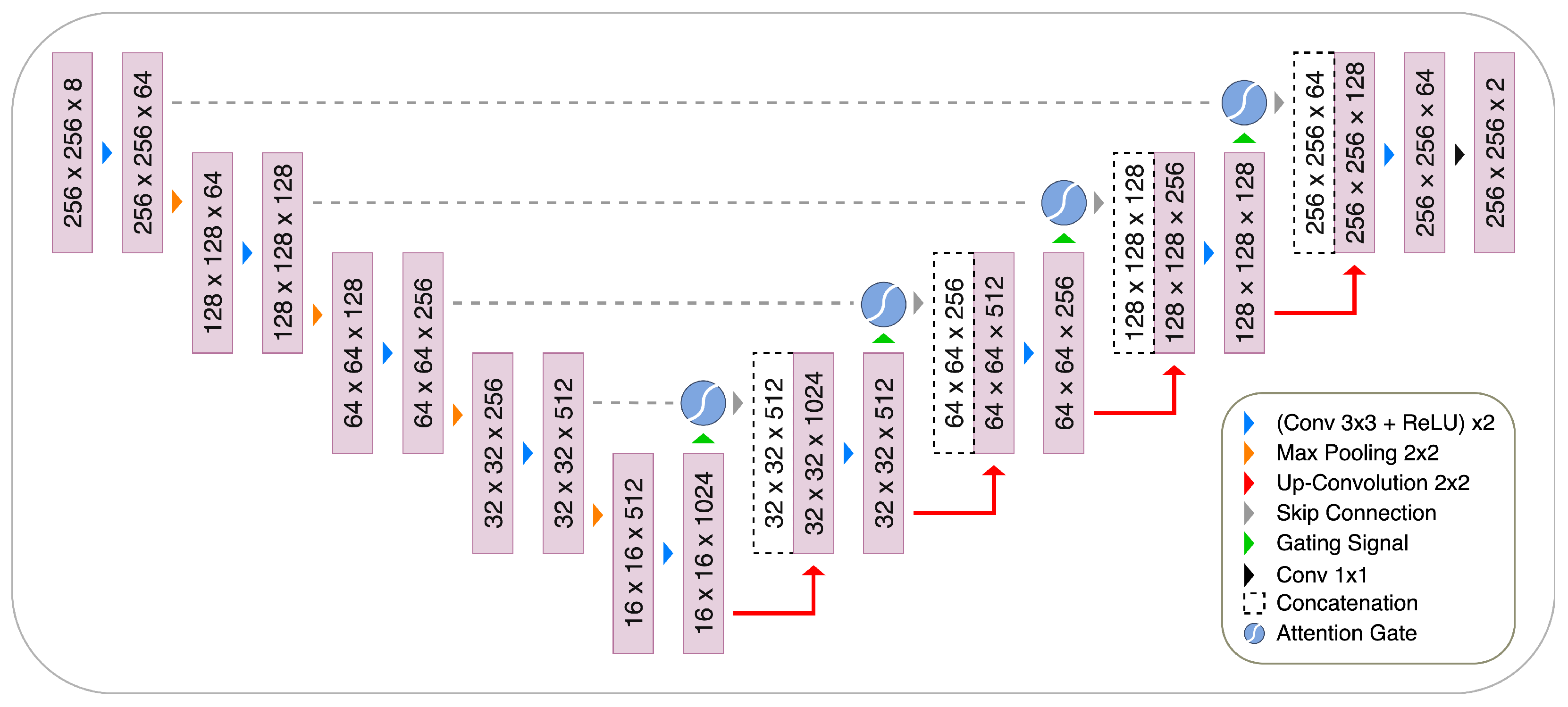 for Attention U-Net. The number of trainable parameters for U-Net with ResNet34 backbone, U-Net with SE-ResNet50 backbone, and Attention U-Net is respectively 24.5 million, 35.1 million, and 36.8 million.