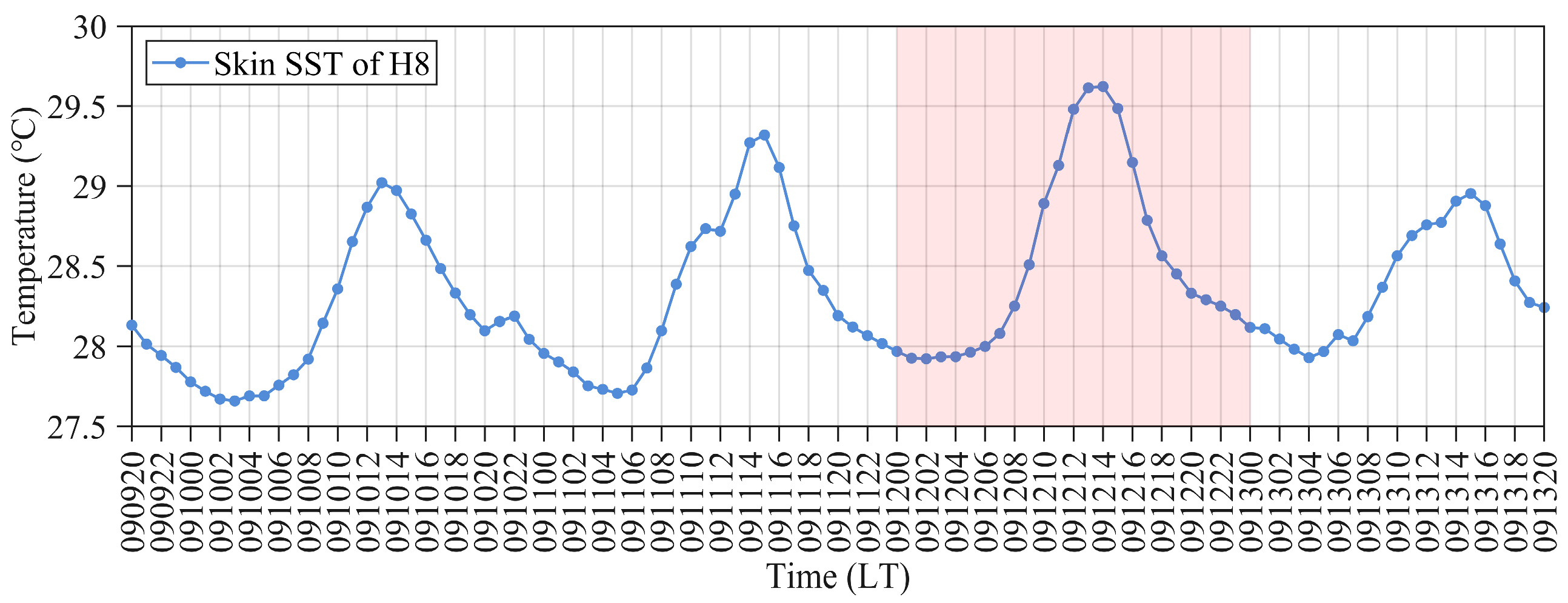 3.1. A Diurnal Warming Event Observed by Himawari-8