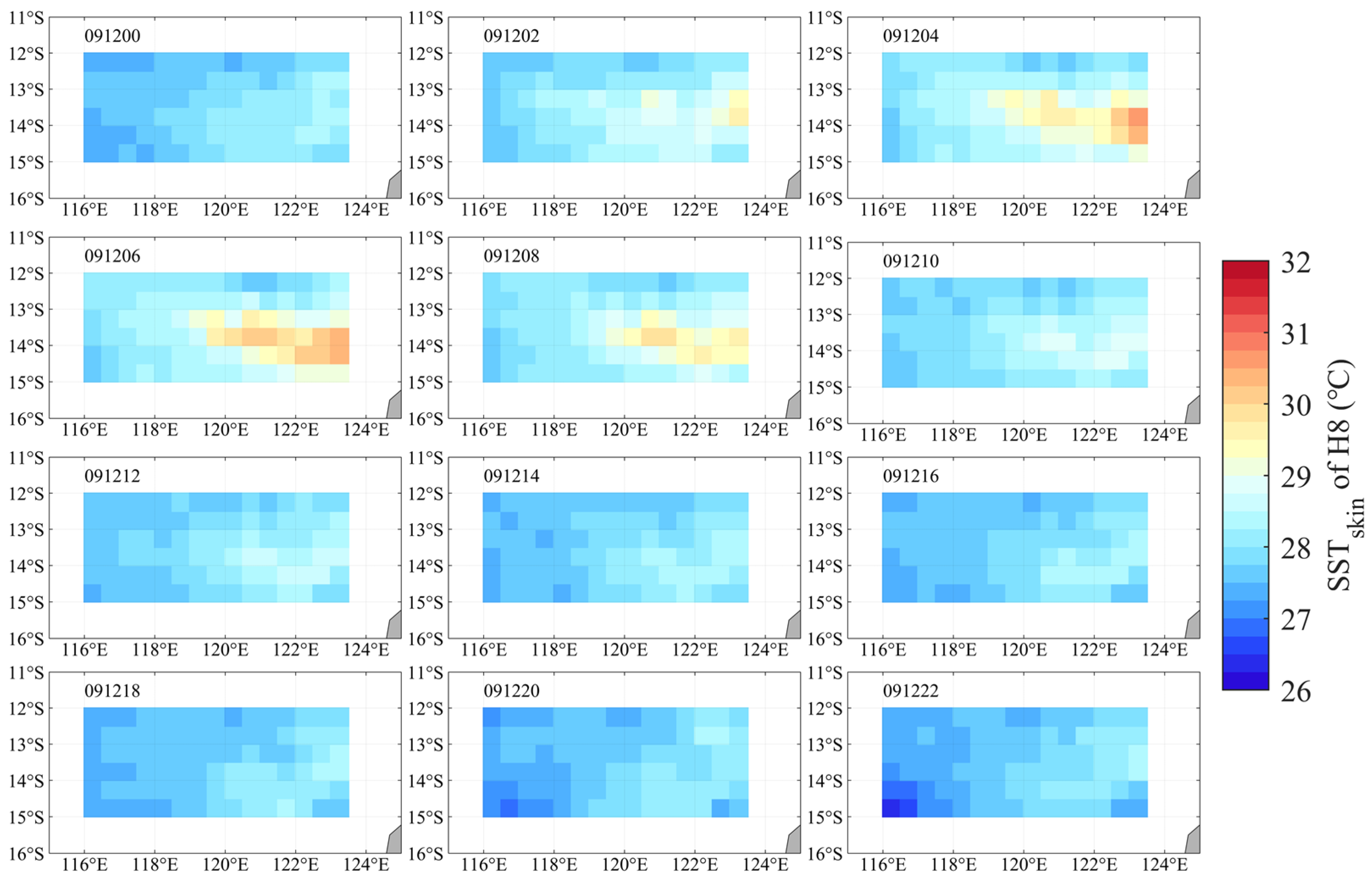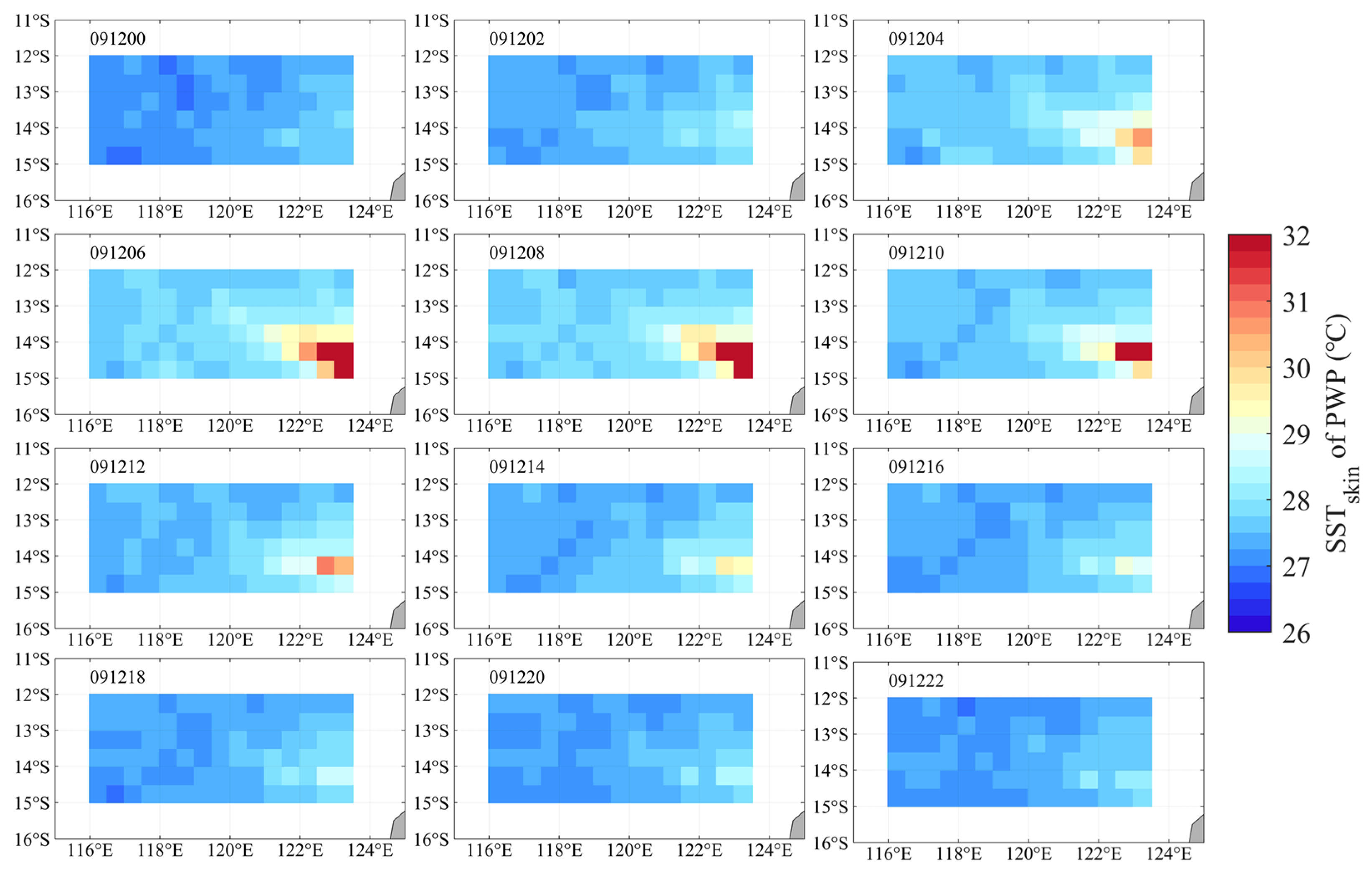 - Zhang, H.; Beggs, H.; Majewski, L.; Wang, X.H.; Kiss, A. Investigating sea surface temperature diurnal variation over the Tropical Warm Pool using MTSAT-1R data. Remote Sens. Environ. 2016, 183, 1–12. [Google Scholar] [CrossRef]