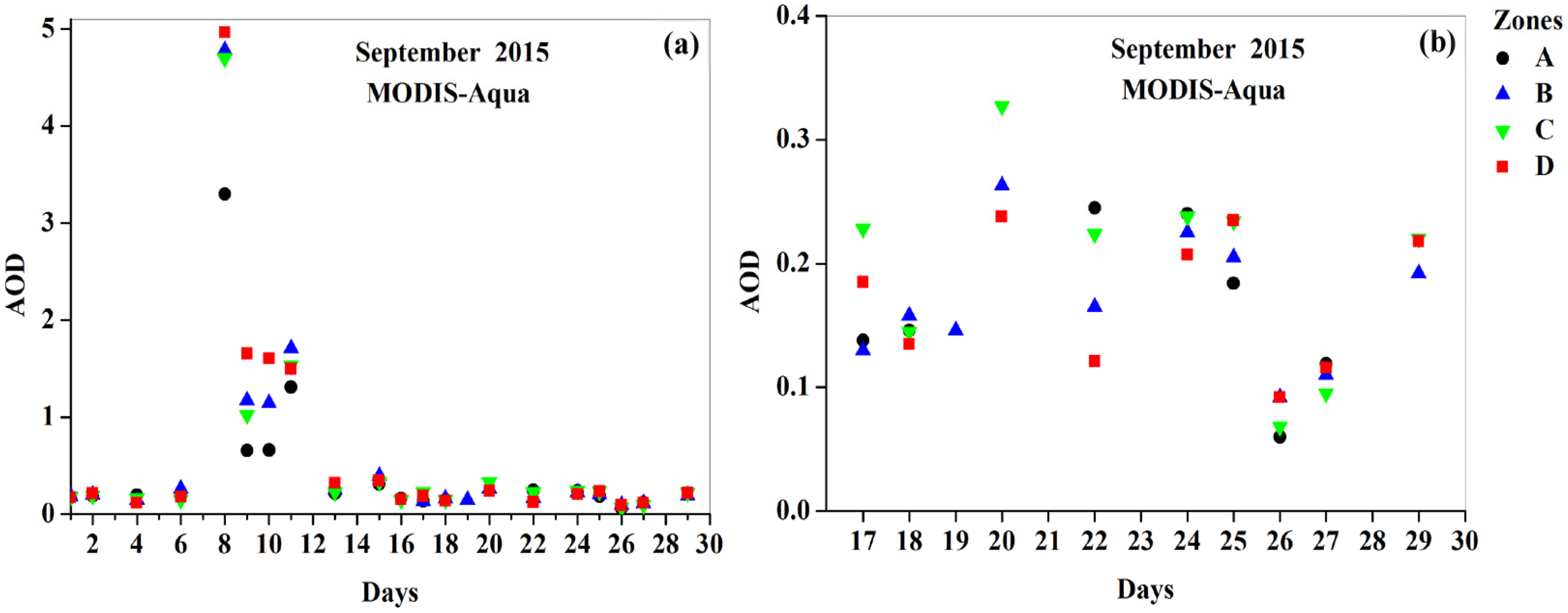 - Shaheen, A.; Wu, R.; Lelieveld, J.; Yousefi, R.; Aldabash, M. Winter AOD trend changes over the Eastern Mediterranean and Middle East region. Int. J. Climatol. 2021, 41, 5516–5535. [Google Scholar] [CrossRef]