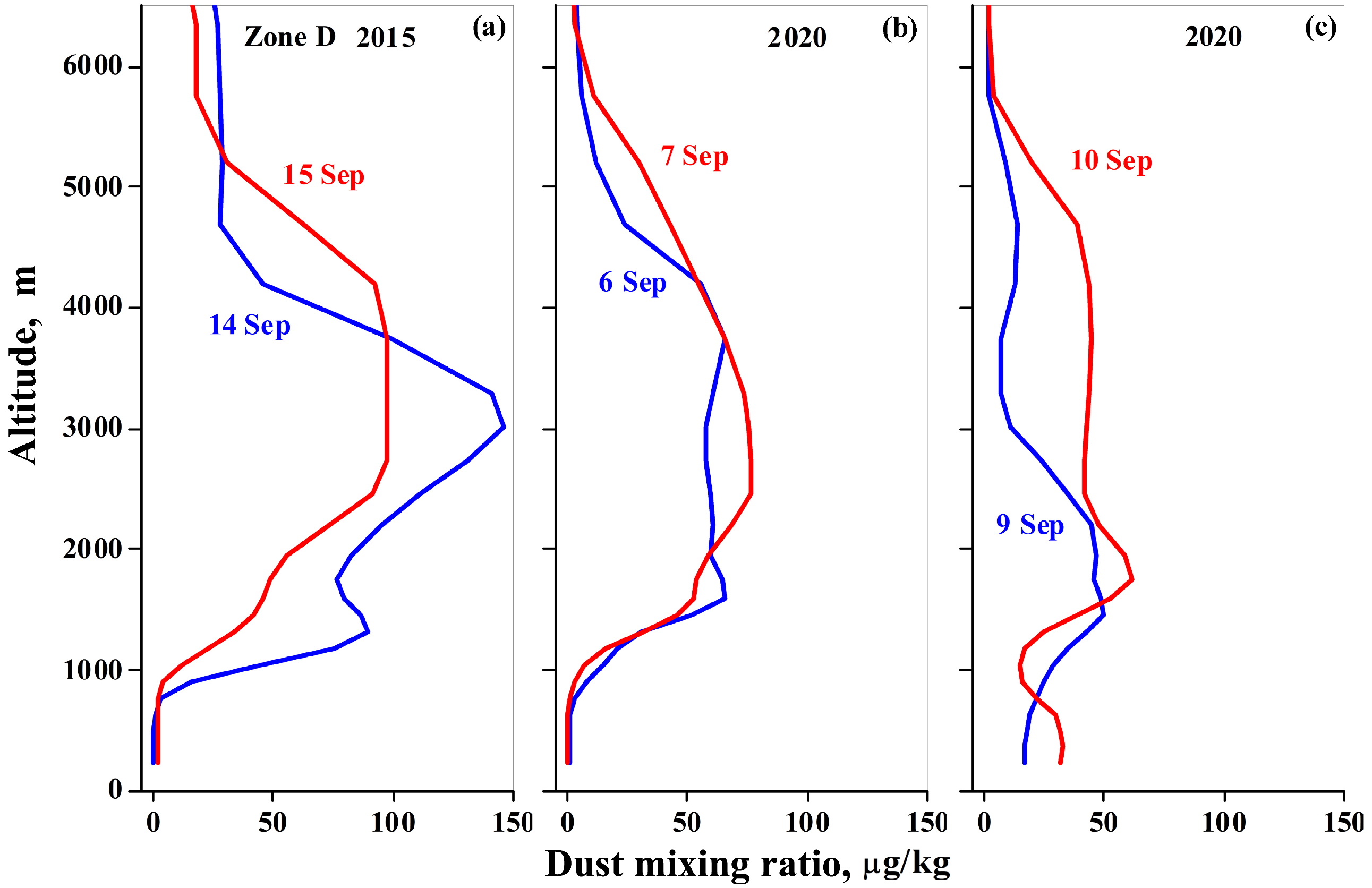 3.2.1. Characteristic Features of Dust Intrusions in September 2015
