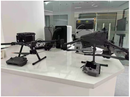 DJI UAV platforms used in this study. The left system is a DJI Matrice 350 RTK equipped with the Zenmuse L2 LiDAR–RGB integrated sensor, providing high-accuracy 3D point clouds and high-resolution optical imagery. The right system is a DJI Matrice 300 RTK carrying an interchangeable RGB camera module for complementary aerial acquisitions. These UAV platforms support stable multi-temporal imaging under varying terrain and illumination conditions.