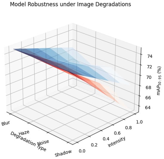 The training configuration was carefully designed to balance convergence stability and UAV crack detection accuracy. The input image resolution was fixed at pixels, which is sufficient to preserve the fine-scale geometry of elongated cracks while maintaining computational feasibility. Each model was trained for 300 epochs with a batch size of 16 on a single GPU. To avoid excessive augmentation effects during the later stages of training, the mosaic augmentation was disabled after 50 epochs by setting close_mosaic = 50, ensuring that the model gradually adapts to realistic crack appearances. Early stopping was enabled with a patience of 50 epochs, preventing overfitting when the validation loss plateaued.