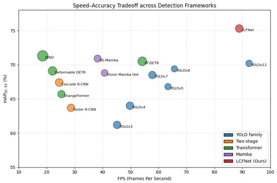 - LCFNet achieves superior performance on the UAV-Filiform Crack Dataset (mAP50:95 = 75.3%, F1 = 85.5%, CDR = 85.6%) while maintaining real-time inference (88.9 FPS) and strong generalization in field UAV–IoT monitoring tests.