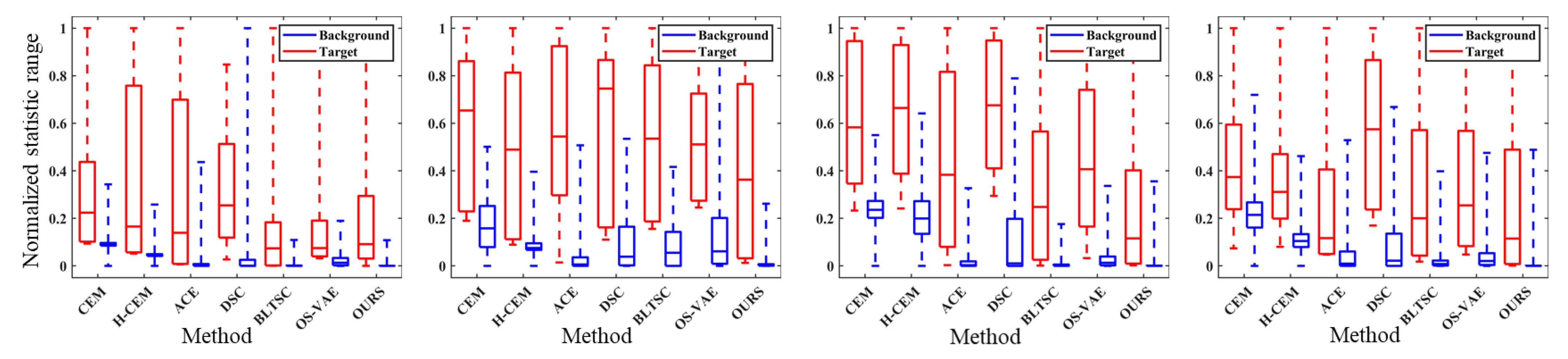 16], which innovatively introduces cascaded detection and multi-scale scanning strategies, enhancing the generalization ability and non-linear discriminative capacity of the hyperspectral target detector, resulting in higher detection accuracy and stability. Chang [