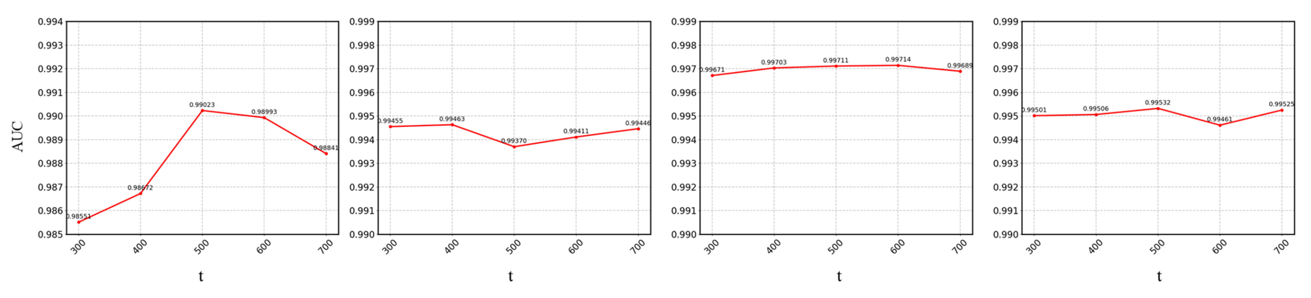 serves as a critical control parameter, playing a key role in precisely regulating the proportion of original data retained at each step, directly influencing the trend of the data during the diffusion process. In our implementation,