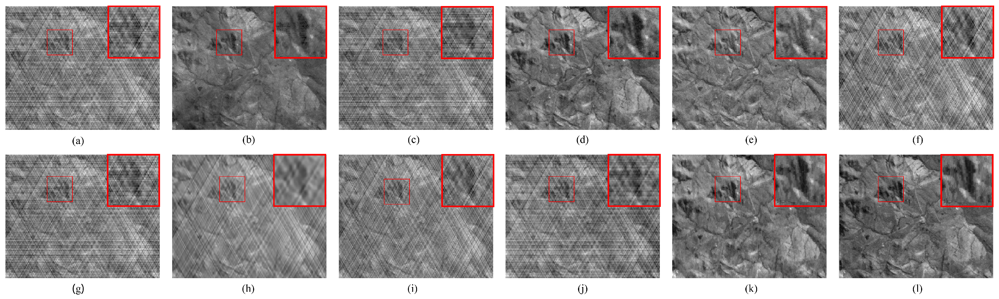 - Cao, C.; Dai, K.; Hong, S.; Zhang, M. Anisotropic total variation model for removing oblique stripe noise in remote sensing image. Optik 2021, 227, 165254. [Google Scholar] [CrossRef]