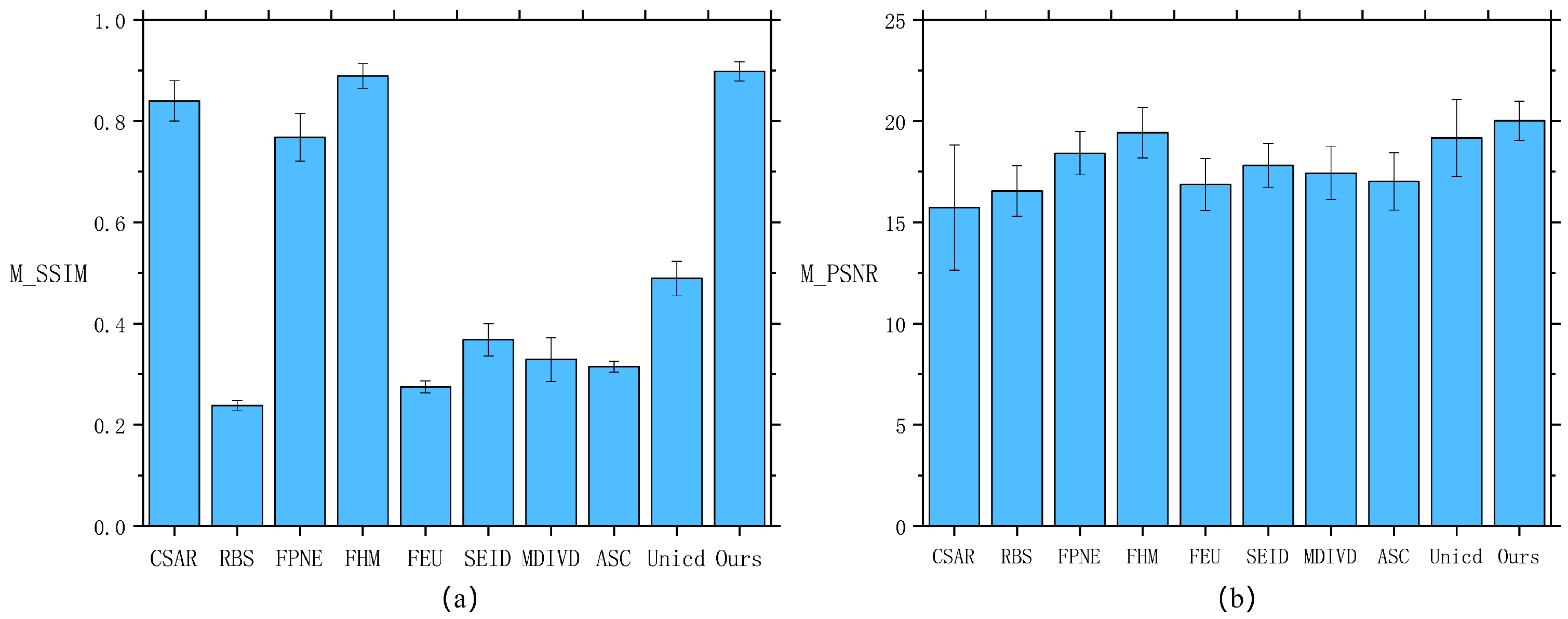 - Wang, Z.; Bovik, A.C.; Sheikh, H.R.; Simoncelli, E.P. Image quality assessment: From error visibility to structural similarity. IEEE Trans. Image Process. 2004, 13, 600–612. [Google Scholar] [CrossRef]